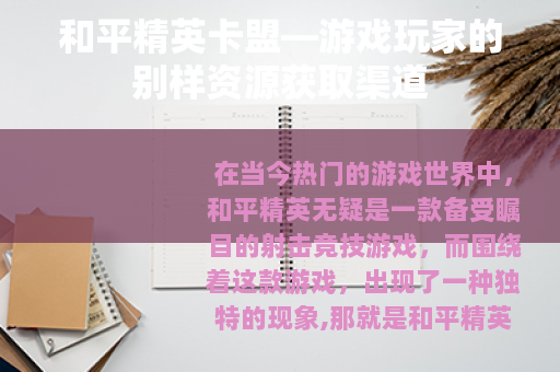 在当今热门的游戏世界中,和平精英无疑是一款备受瞩目的射击竞技游戏,而围绕着这款游戏,出现了一种独特的现象,那就是和平精英卡盟。
