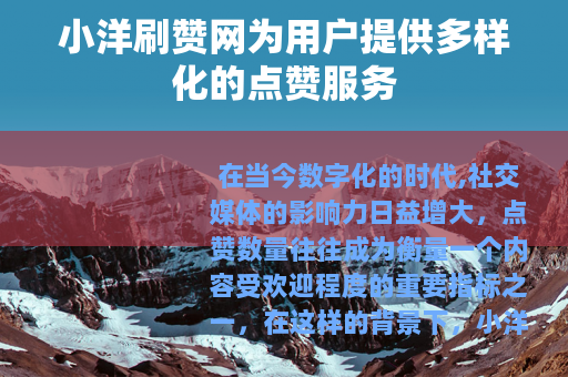 在当今数字化的时代,社交媒体的影响力日益增大,点赞数量往往成为衡量一个内容受欢迎程度的重要指标之一,在这样的背景下,小洋刷赞网应运而生,为广大用户提供了一种独特的服务体验。