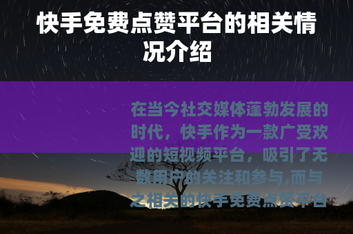 在当今社交媒体蓬勃发展的时代,快手作为一款广受欢迎的短视频平台,吸引了无数用户的关注和参与,而与之相关的快手免费点赞平台也逐渐进入了人们的视野。