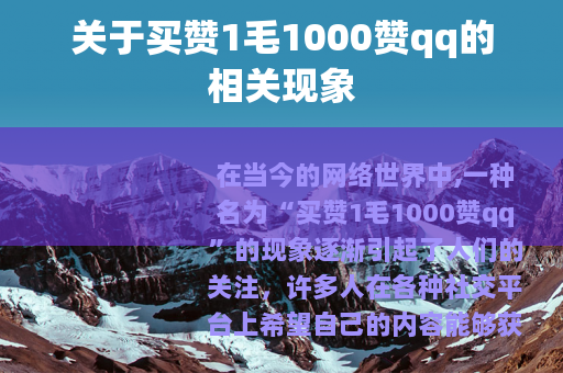 在当今的网络世界中,一种名为“买赞1毛1000赞qq”的现象逐渐引起了人们的关注,许多人在各种社交平台上希望自己的内容能够获得更多的点赞,以展示其受欢迎程度和影响力,而这种以极低价格提供大量点赞的qq服务便应运而生。