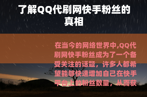 在当今的网络世界中,QQ代刷网快手粉丝成为了一个备受关注的话题,许多人都希望能够快速增加自己在快手平台上的粉丝数量,从而获得更多的关注和影响力,而QQ代刷网似乎提供了这样一条看似便捷的途径。
