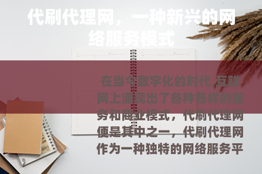在当今数字化的时代,互联网上涌现出了各种各样的服务和商业模式,代刷代理网便是其中之一,代刷代理网作为一种独特的网络服务平台,正逐渐在网络世界中崭露头角,吸引了众多用户和创业者的关注。