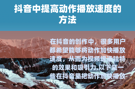 在抖音的创作中,很多用户都希望能够将动作加快播放速度,从而为视频增添独特的效果和吸引力,以下是一些在抖音里把动作加快播放速度的有效方法。