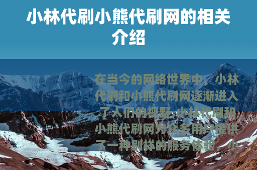 在当今的网络世界中,小林代刷和小熊代刷网逐渐进入了人们的视野,小林代刷和小熊代刷网为众多用户提供了一种别样的服务体验。