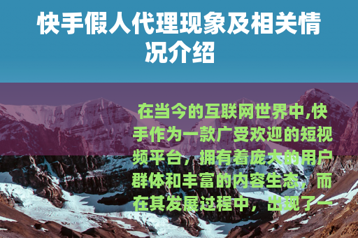 快手假人代理是在快手平台发展过程中出现的一种特殊现象,它既有其产生的一定原因和背景,也带来了诸多的问题和挑战,对于平台、用户和整个互联网生态来说,都需要共同努力,通过技术手段、规则制度和用户教育等多方面的措施,来有效地应对和解决这一问题,以维护快手平台的健康发展和良好的生态环境,让真正优质的内容和创作者能够在一个公平、公正的平台上得到应有的关注和发展机会,为广大用户提供更加真实、优质的短视频体验。