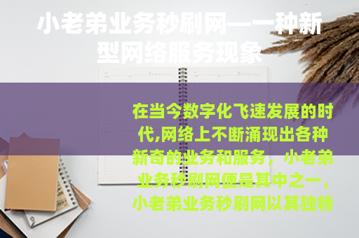 在当今数字化飞速发展的时代,网络上不断涌现出各种新奇的业务和服务,小老弟业务秒刷网便是其中之一,小老弟业务秒刷网以其独特的业务模式吸引了众多用户的关注。