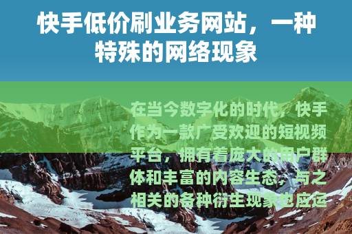 在当今数字化的时代,快手作为一款广受欢迎的短视频平台,拥有着庞大的用户群体和丰富的内容生态,与之相关的各种衍生现象也应运而生,其中就包括一些声称提供快手低价刷业务的网站。