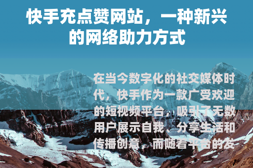 在当今数字化的社交媒体时代,快手作为一款广受欢迎的短视频平台,吸引了无数用户展示自我、分享生活和传播创意,而随着平台的发展,一种与之相关的服务——快手充点赞网站也逐渐兴起,为众多快手用户提供了一种新的助力途径。