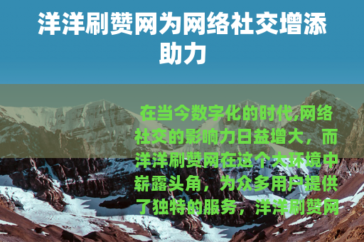 在当今数字化的时代,网络社交的影响力日益增大,而洋洋刷赞网在这个大环境中崭露头角,为众多用户提供了独特的服务。