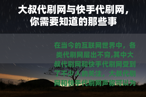 在当今的互联网世界中,各类代刷网层出不穷,其中大叔代刷网和快手代刷网受到了不少人的关注。