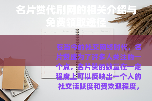 在当今数字化的时代,社交网络已经成为人们生活中不可或缺的一部分,名片赞作为社交网络中的一个重要元素,也越来越受到人们的重视,免费领取名片赞的代刷网的出现,为人们在社交网络中的自我展示和社交互动提供了新的途径和方式。