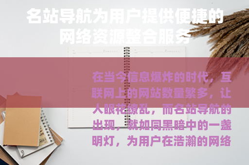 在当今信息爆炸的时代,互联网上的网站数量繁多,让人眼花缭乱,而名站导航的出现,就如同黑暗中的一盏明灯,为用户在浩瀚的网络海洋中指引方向,提供了极大的便利。