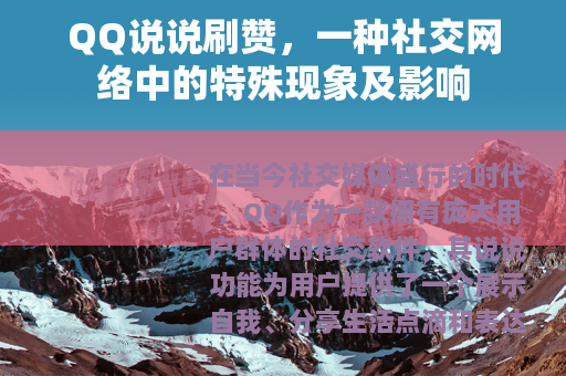 在当今社交媒体盛行的时代,QQ作为一款拥有庞大用户群体的社交软件,其说说功能为用户提供了一个展示自我、分享生活点滴和表达情感的平台,而在这个平台上,QQ说说刷赞现象逐渐兴起,成为了一个值得关注的社交网络中的特殊现象。