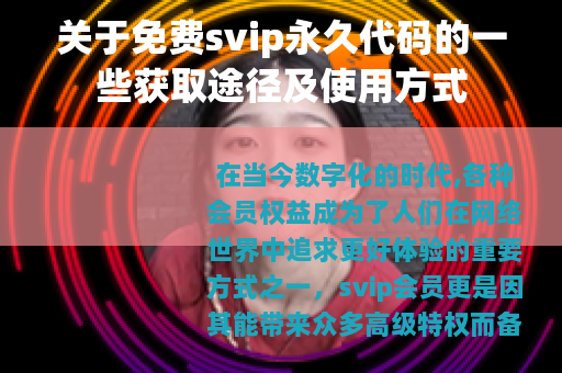 在当今数字化的时代,各种会员权益成为了人们在网络世界中追求更好体验的重要方式之一,svip会员更是因其能带来众多高级特权而备受青睐,而免费svip永久代码的存在,无疑是许多人渴望了解和获取的。