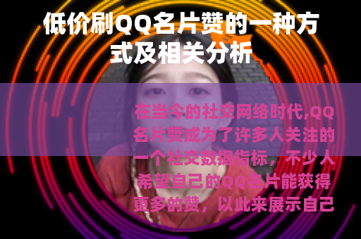 在当今的社交网络时代,QQ名片赞成为了许多人关注的一个社交数据指标,不少人希望自己的QQ名片能获得更多的赞,以此来展示自己的人气和社交魅力,而在众多获取QQ名片赞的途径中,低价刷QQ名片赞的现象逐渐引起了人们的注意。