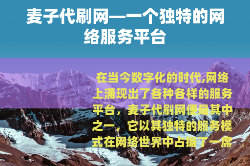 在当今数字化的时代,网络上涌现出了各种各样的服务平台,麦子代刷网便是其中之一,它以其独特的服务模式在网络世界中占据了一席之地。