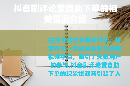 在当今的社交媒体时代,抖音作为一款极具影响力的短视频平台,吸引了无数用户的参与,抖音刷评论赞自助下单的现象也逐渐引起了人们的关注。