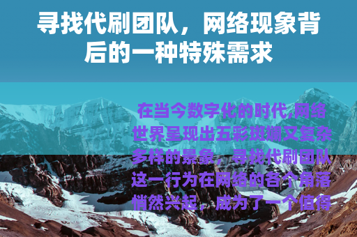 在当今数字化的时代,网络世界呈现出五彩斑斓又复杂多样的景象,寻找代刷团队这一行为在网络的各个角落悄然兴起,成为了一个值得关注的现象。