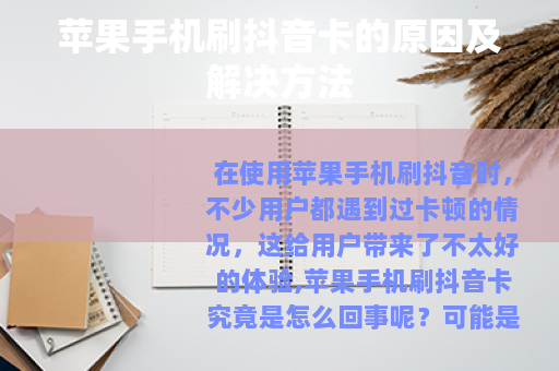 苹果手机刷抖音卡是由多种因素共同作用的结果,通过排查和解决这些问题,我们可以让苹果手机在刷抖音时更加流畅,提升我们的使用体验。