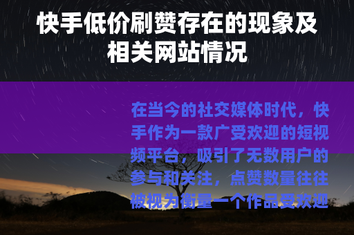 在当今的社交媒体时代,快手作为一款广受欢迎的短视频平台,吸引了无数用户的参与和关注,点赞数量往往被视为衡量一个作品受欢迎程度的重要指标之一,而在这样的背景下,出现了一些所谓的快手低价刷赞网站。