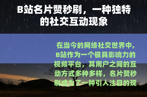 在当今的网络社交世界中,B站作为一个极具影响力的视频平台,其用户之间的互动方式多种多样,名片赞秒刷成为了一种引人注目的现象。