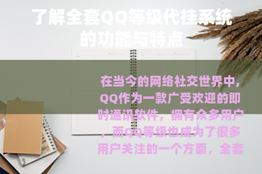 在当今的网络社交世界中,QQ作为一款广受欢迎的即时通讯软件,拥有众多用户,而QQ等级也成为了很多用户关注的一个方面,全套QQ等级代挂系统便应运而生。