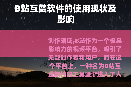 创作领域,B站作为一个极具影响力的视频平台,吸引了无数创作者和用户,而在这个平台上,一种名为B站互赞软件的工具逐渐进入了人们的视野。