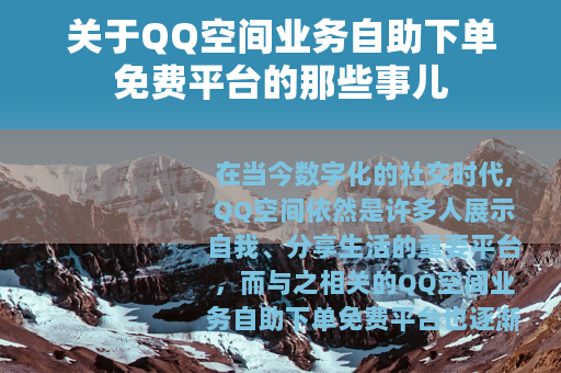 在当今数字化的社交时代,QQ空间依然是许多人展示自我、分享生活的重要平台,而与之相关的QQ空间业务自助下单免费平台也逐渐进入了人们的视野。