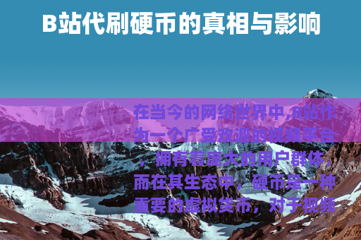 在当今的网络世界中,B站作为一个广受欢迎的视频平台,拥有着庞大的用户群体,而在其生态中,硬币是一种重要的虚拟货币,对于视频创作者来说,硬币的数量在一定程度上代表着作品的受欢迎程度和价值,近年来出现了一种现象,那就是B站代刷硬币服务的兴起。