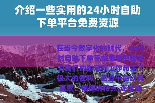 在当今数字化的时代,24小时自助下单平台免费的模式为我们的生活和工作带来了极大的便利,这些平台以其高效、便捷的特点,逐渐成为了人们获取各种服务和商品的重要途径。