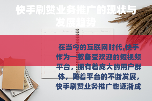 在当今的互联网时代,快手作为一款备受欢迎的短视频平台,拥有着庞大的用户群体,随着平台的不断发展,快手刷赞业务推广也逐渐成为了一个热门话题。