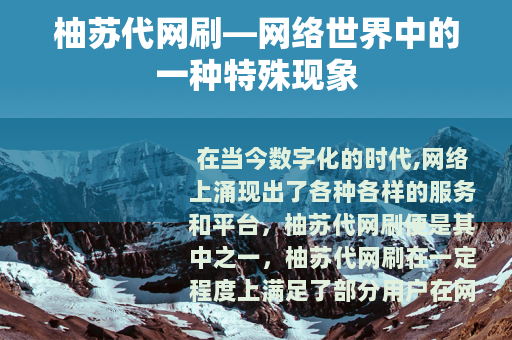 在当今数字化的时代,网络上涌现出了各种各样的服务和平台,柚苏代网刷便是其中之一,柚苏代网刷在一定程度上满足了部分用户在网络活动中的特定需求。