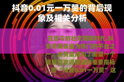 在当今的社交媒体时代,抖音无疑是最为热门的平台之一,点赞量成为了衡量一个视频受欢迎程度的重要指标,而“抖音0.01一万赞”这样的现象也逐渐进入了大众的视野,引发了人们的广泛关注和讨论。