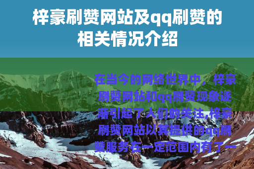 在当今的网络世界中,梓豪刷赞网站和qq刷赞现象逐渐引起了人们的关注,梓豪刷赞网站以其提供的qq刷赞服务在一定范围内有了一定的知名度。