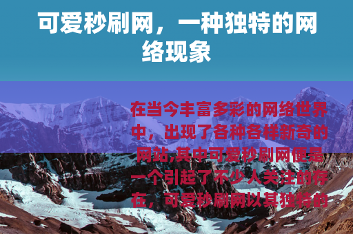在当今丰富多彩的网络世界中,出现了各种各样新奇的网站,其中可爱秒刷网便是一个引起了不少人关注的存在。
