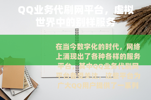 在当今数字化的时代,网络上涌现出了各种各样的服务平台,其中QQ业务代刷网平台备受关注,这些平台为广大QQ用户提供了一系列独特的业务代刷服务,满足了不同用户在虚拟社交领域的多样化需求。