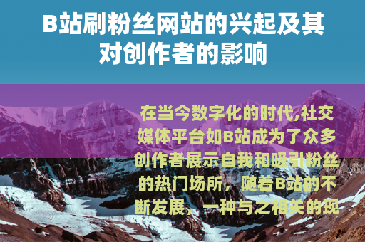 在当今数字化的时代,社交媒体平台如B站成为了众多创作者展示自我和吸引粉丝的热门场所,随着B站的不断发展,一种与之相关的现象也逐渐浮现,那就是B站刷粉丝网站的出现。