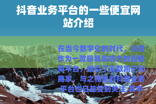 在当今数字化的时代,抖音作为一款极具影响力的短视频平台,吸引了无数用户和商家,与之相关的抖音业务平台也日益受到关注,其中有不少便宜网站为用户提供了各种服务和机会。