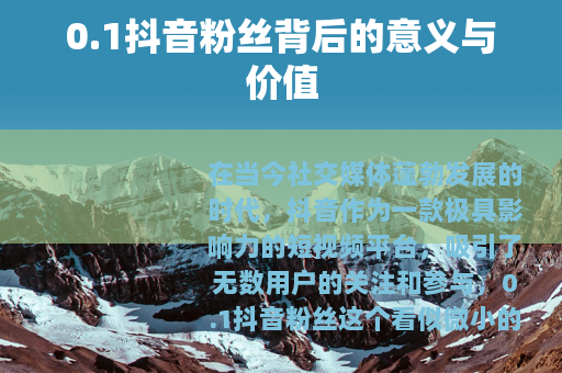 在当今社交媒体蓬勃发展的时代,抖音作为一款极具影响力的短视频平台,吸引了无数用户的关注和参与,0.1抖音粉丝这个看似微小的数字,却有着独特的意义和价值。