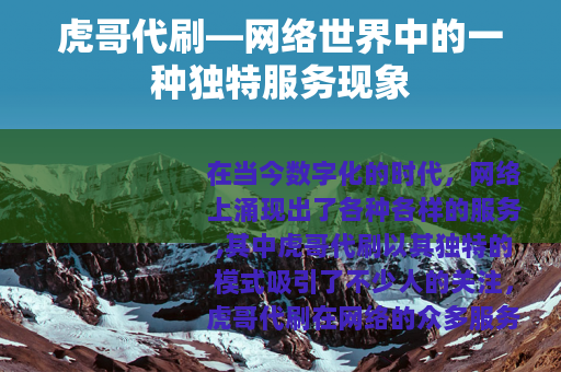 在当今数字化的时代,网络上涌现出了各种各样的服务,其中虎哥代刷以其独特的模式吸引了不少人的关注。