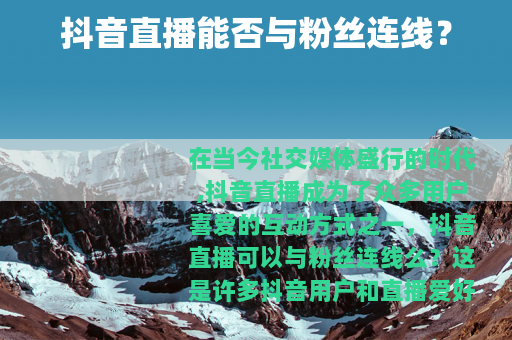 在当今社交媒体盛行的时代,抖音直播成为了众多用户喜爱的互动方式之一,抖音直播可以与粉丝连线么?这是许多抖音用户和直播爱好者都十分关心的问题。