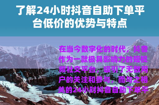 在当今数字化的时代,抖音作为一款极具影响力的短视频社交平台,吸引了无数用户的关注和参与,而与之相关的24小时抖音自助下单平台低价也逐渐走进了人们的视野,为众多抖音用户提供了一种全新的服务体验。