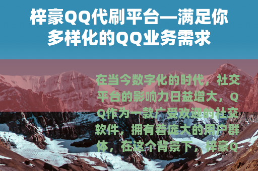 在当今数字化的时代,社交平台的影响力日益增大,QQ作为一款广受欢迎的社交软件,拥有着庞大的用户群体,在这个背景下,梓豪QQ代刷平台应运而生,为众多QQ用户提供了一系列丰富多样的服务。