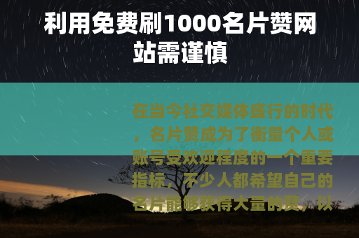 在当今社交媒体盛行的时代,名片赞成为了衡量个人或账号受欢迎程度的一个重要指标,不少人都希望自己的名片能够获得大量的赞,以展现自己的人气和魅力,而免费刷1000名片赞网站也应运而生,吸引了众多人的目光。