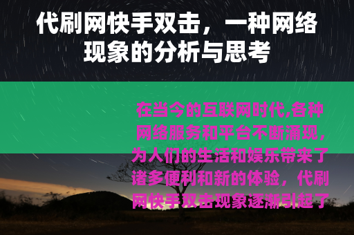 在当今的互联网时代,各种网络服务和平台不断涌现,为人们的生活和娱乐带来了诸多便利和新的体验,代刷网快手双击现象逐渐引起了人们的关注。