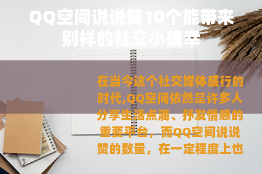 在当今这个社交媒体盛行的时代,QQ空间依然是许多人分享生活点滴、抒发情感的重要平台,而QQ空间说说赞的数量,在一定程度上也反映了一条说说的受欢迎程度以及发布者在社交圈中的影响力,拥有10个说说赞,虽看似不多,却有着独特的意义和价值。