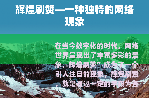 在当今数字化的时代,网络世界呈现出了丰富多彩的景象,辉煌刷赞”成为了一个引人注目的现象。