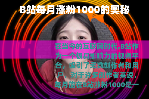 在当今的互联网时代,B站作为一个极具影响力的视频平台,吸引了无数创作者和用户,对于许多创作者来说,每月能在B站涨粉1000是一个非常令人向往的目标,究竟如何才能实现B站每月涨粉1000呢? 质量是关键,要制作出高质量、有吸引力的视频内容,这意味着视频要有清晰的主题,能够准确地传达给观众你想要表达的信息,无论是搞笑、知识科普、美食制作还是游戏攻略等各种类型的视频,都要确保在内容上有独特之处,能够让观众在众多视频中一眼就被吸引。