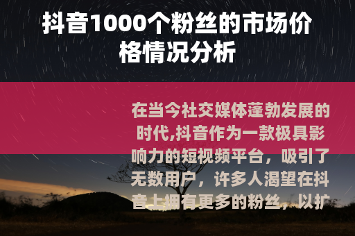 在当今社交媒体蓬勃发展的时代,抖音作为一款极具影响力的短视频平台,吸引了无数用户,许多人渴望在抖音上拥有更多的粉丝,以扩大自己的影响力和实现各种目标,一个常见的问题就是抖音1000个粉丝多少钱。