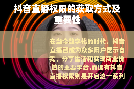 在当今数字化的时代,抖音直播已成为众多用户展示自我、分享生活和实现商业价值的重要平台,而拥有抖音直播权限则是开启这一系列精彩可能的关键钥匙。